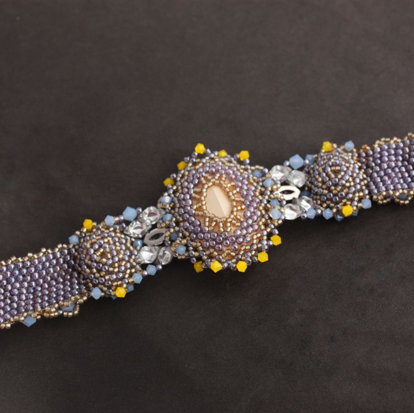 Поэтому, в своей работе "Зарождение любви" с помощью кристаллов, шатонов и бисера я хотела воссоздать эти первые минуты. Показать, как двое, находясь среди звёзд, встречают друг друга. И переплетаясь сложным плетением, образуют между собой единое целое - любовь. Любовь в моей работе, символизирует кристалл 4127 Crystal Ivory Cream Delite. Включила я его в работу потому, кристалл подходит для того, чтобы передать мое видение любови, как чувства большого, многогранного и нежного цвета.