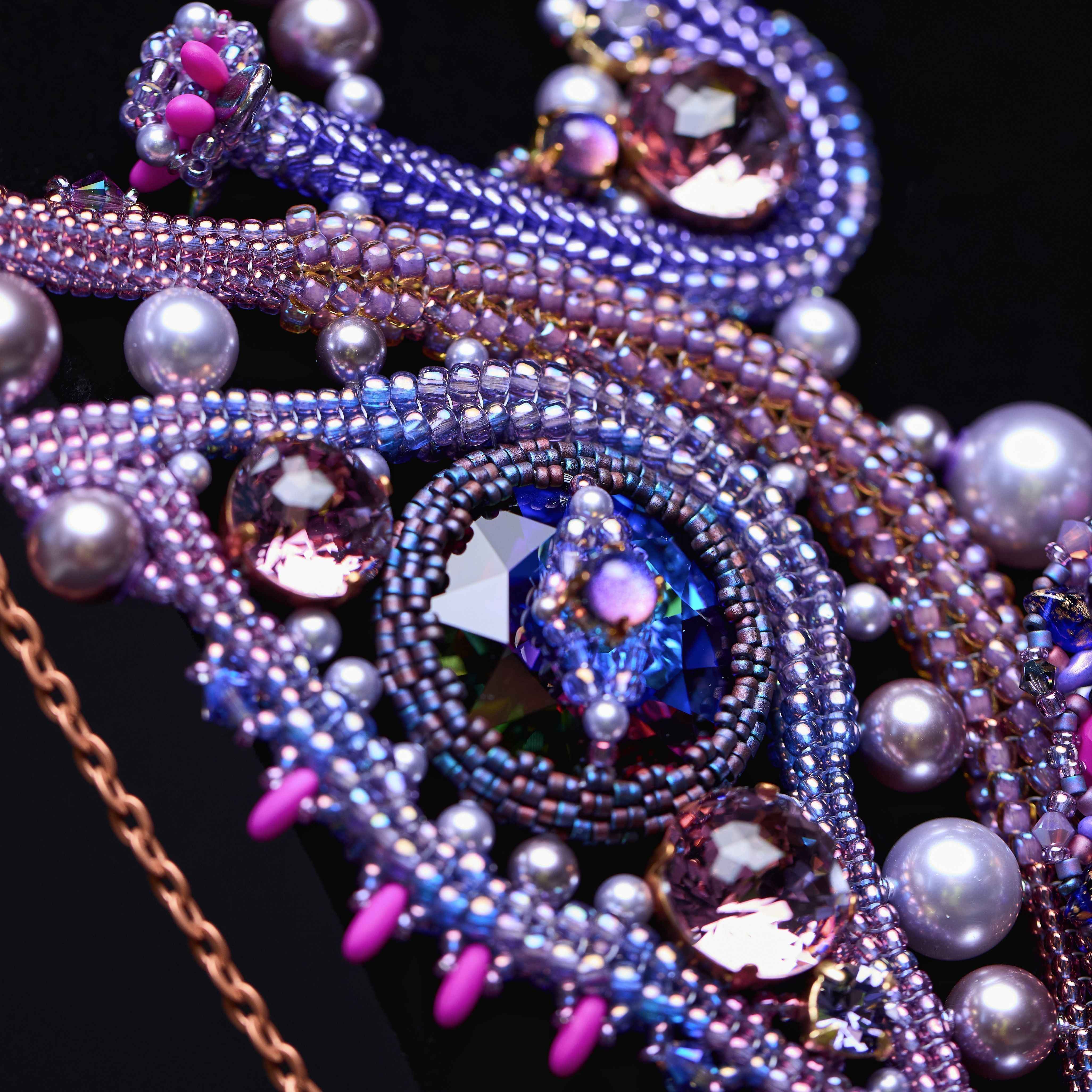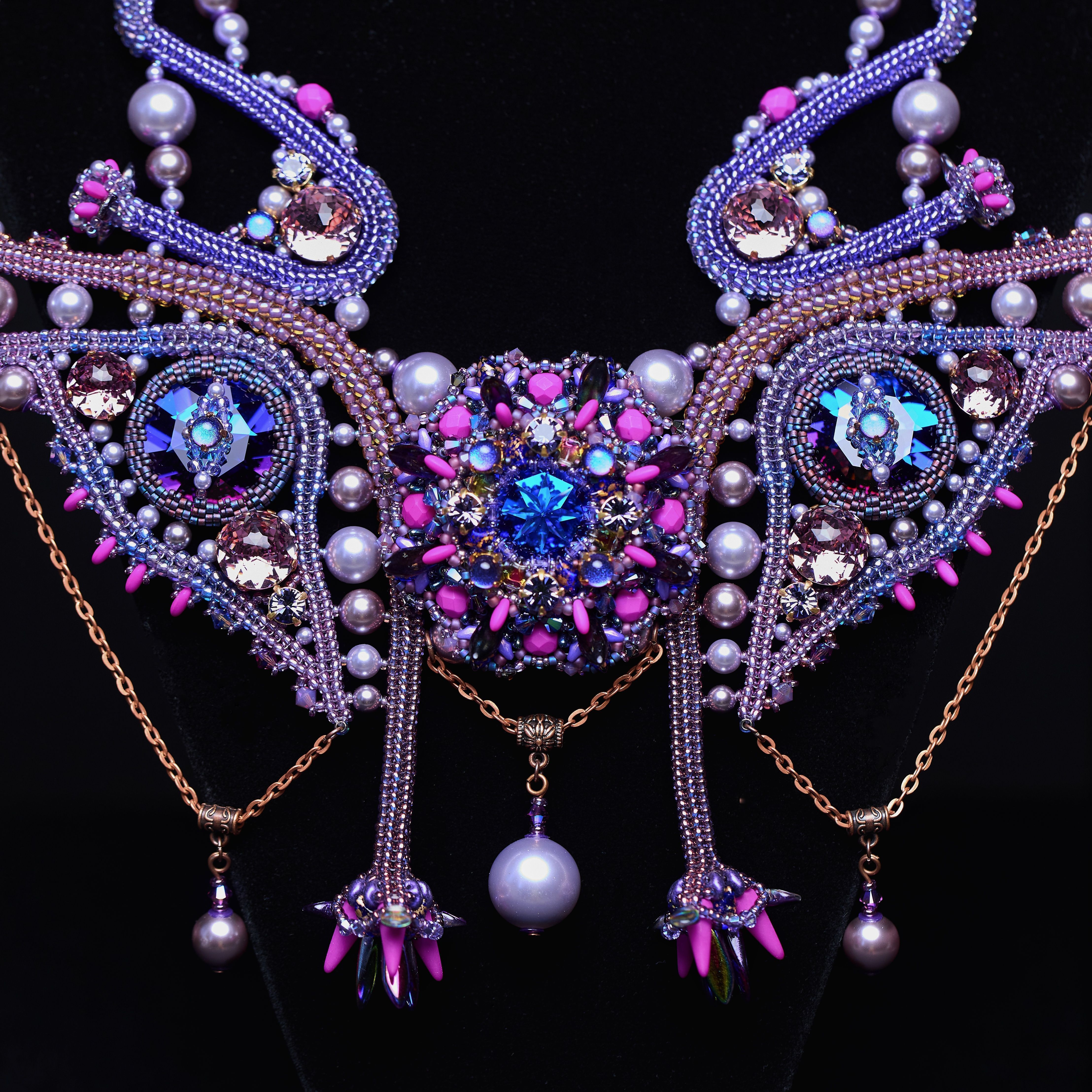 Приобретённый опыт позволяет создавать абсолютно немыслимые метаморфозы в моем внутреннем мире. Каков мой ментальный третий глаз? Он словно многоцветные фракталы, воспроизводящие сами себя в бесконечность. Эти формы, потоки спиралей и цветов отразились в центральном элементе моей работы. Симметрия глаз как органов зрения воплощена в боковых элементах. Потому что невозможно видеть шире и глубже, если нет способности видеть этот мир во всей своей живости и уникальности.