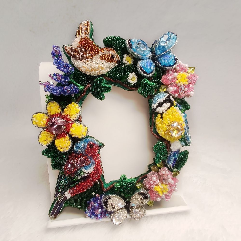 Элементы броши расположены по кругу – символу бесконечности. Данный символ показывает бесконечность развития, жизни и времени. Цветы, птицы и бабочки при создании композиции выбраны не случайно. Розовые первоцветы расцветают первыми, предсказывая приход весны, цветы сирени символизируют рассвет любви, бабочка – душу, бессмертие и возрождение. Птица же – знак свободы и счастья.