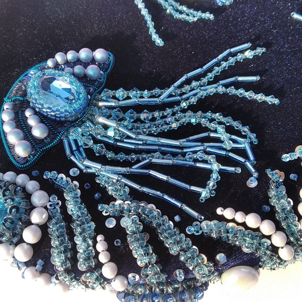В абсолютной темноте, глубоко под толщей воды, проносятся воздушные танцующие медузы - невероятное чудо природной люминесценции. Тьма растворяется, черный превращается в насыщенный бархатный синий, сияющие силуэты кружатся, стремятся вверх, плавно поднимаются. А вокруг прихотливые извивы коралловых ветвей, то колючих, округлых.