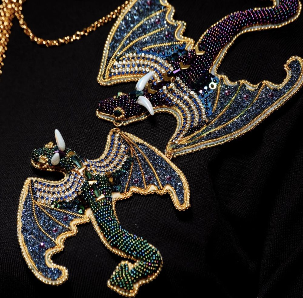В честь 125 - летия дома Swarovski это точно должно быть что то новое, нетипичное! И не долго думая в голове возник образ дракона. Фентезийно - да! Необычно - да! Чем не новые грани сияния кристальной ткани на крыльях, драконьей «чешуи» на солнце, завораживающих взгляд драконов кристаллов на цепях? Но почему дракон? Всем нам хорошо известно что в мифологии именно дракон является защитником и хранителем драгоценностей,золота и сокровищ. Поэтому пусть символ дракона охраняет, оберегает всю красоту и уникальность Swarovski. А компания все так же процветает,словно под присмотром самых сильных древних драконов.