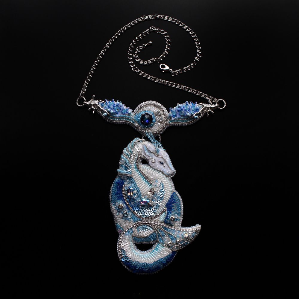 Культура Востока, ее живопись и легенды, повествующие о призрачных, мифических существах, вдохновили меня на создание колье в образе хранителя реки. В Китае считается, что драконы – не злые и хищные змеи, как в других мифологиях. Они помощники, мудрые правители и многочисленные в своих ипостасях жители Поднебесной.