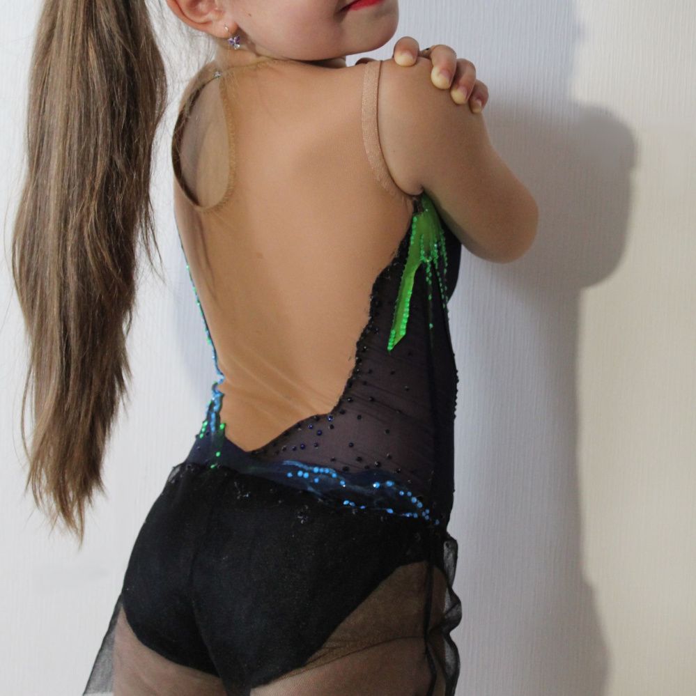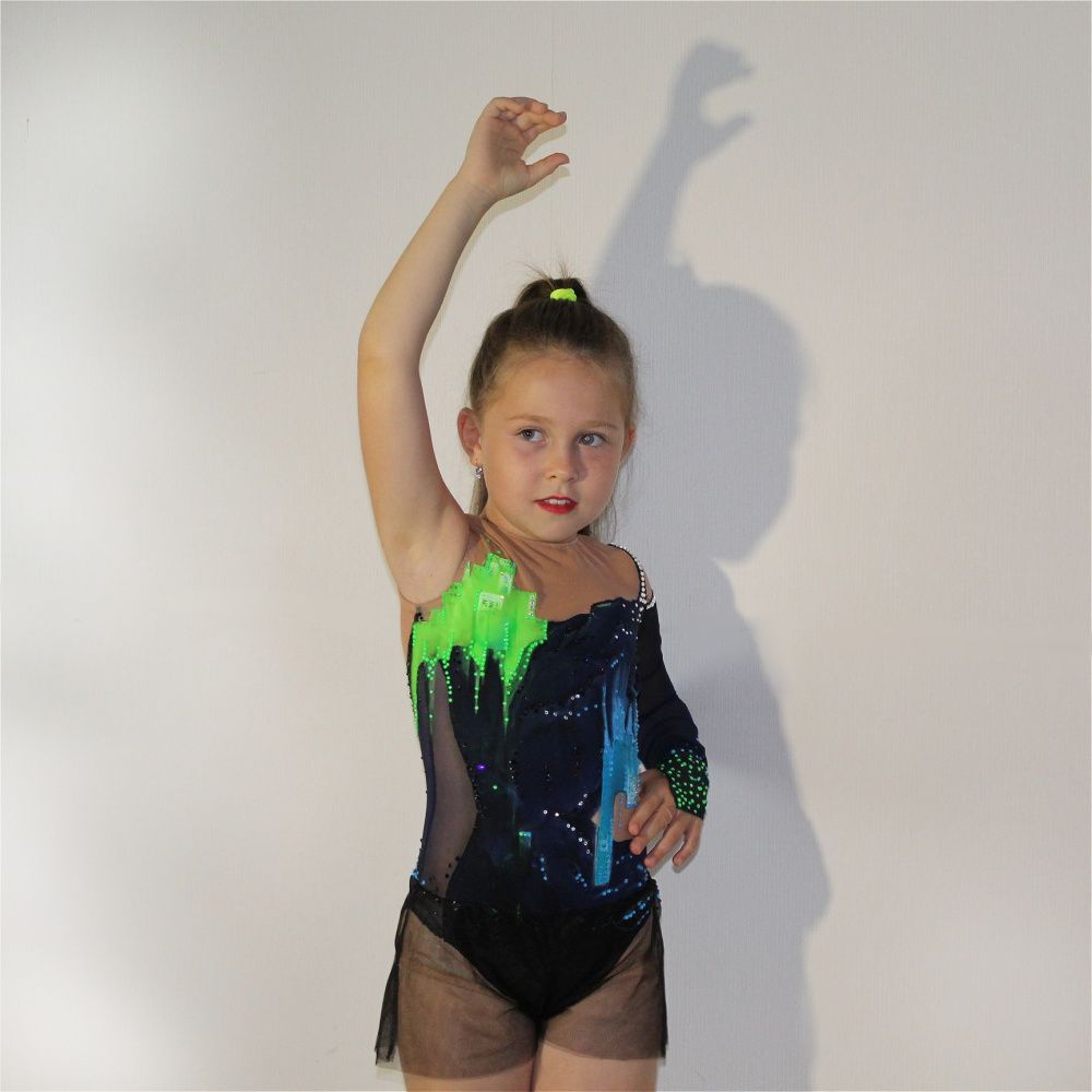 Вдохновленный кинокартиной «Бегущий по лезвию 2049» костюм стремится передать чарующее и футуристическое сияние ночного города, его ярких рекламных экранов и подсветки. Все слоганы на купальнике написаны на китайском языке. Для передачи буйства цвета неспящего мегаполиса использовались стразы линейки electric в цветах blue и green.