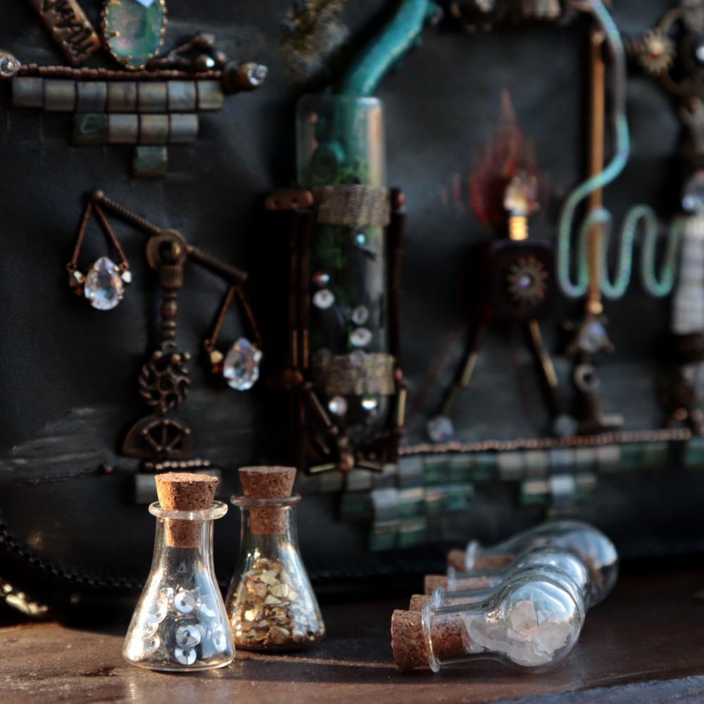 Пробирки на сумочке можно комбинировать по своему желанию. Почувствуй себя средневековым алхимиком и создай свои новые грани сияния!