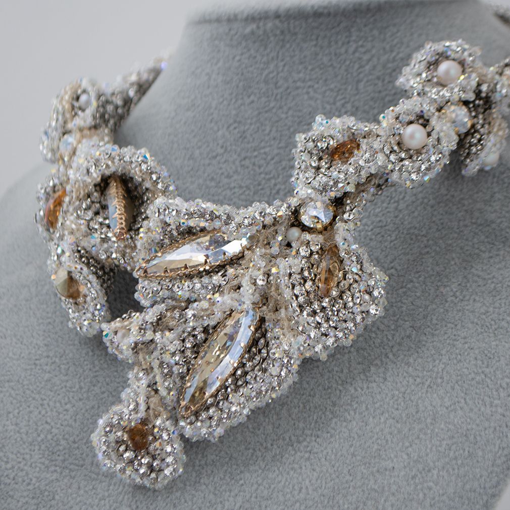Каждое соцветие этого создано вручную в технике бисерного плетения: не просто украшение, а настоящая симфония объёма.